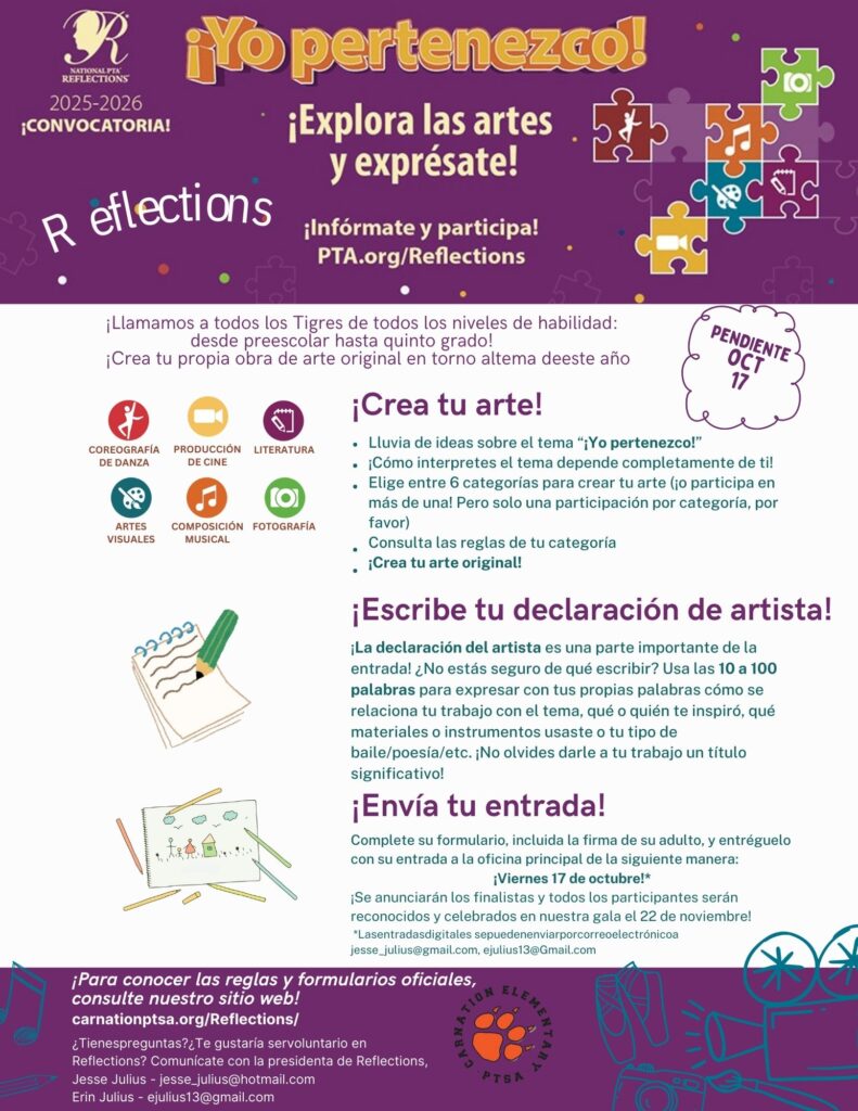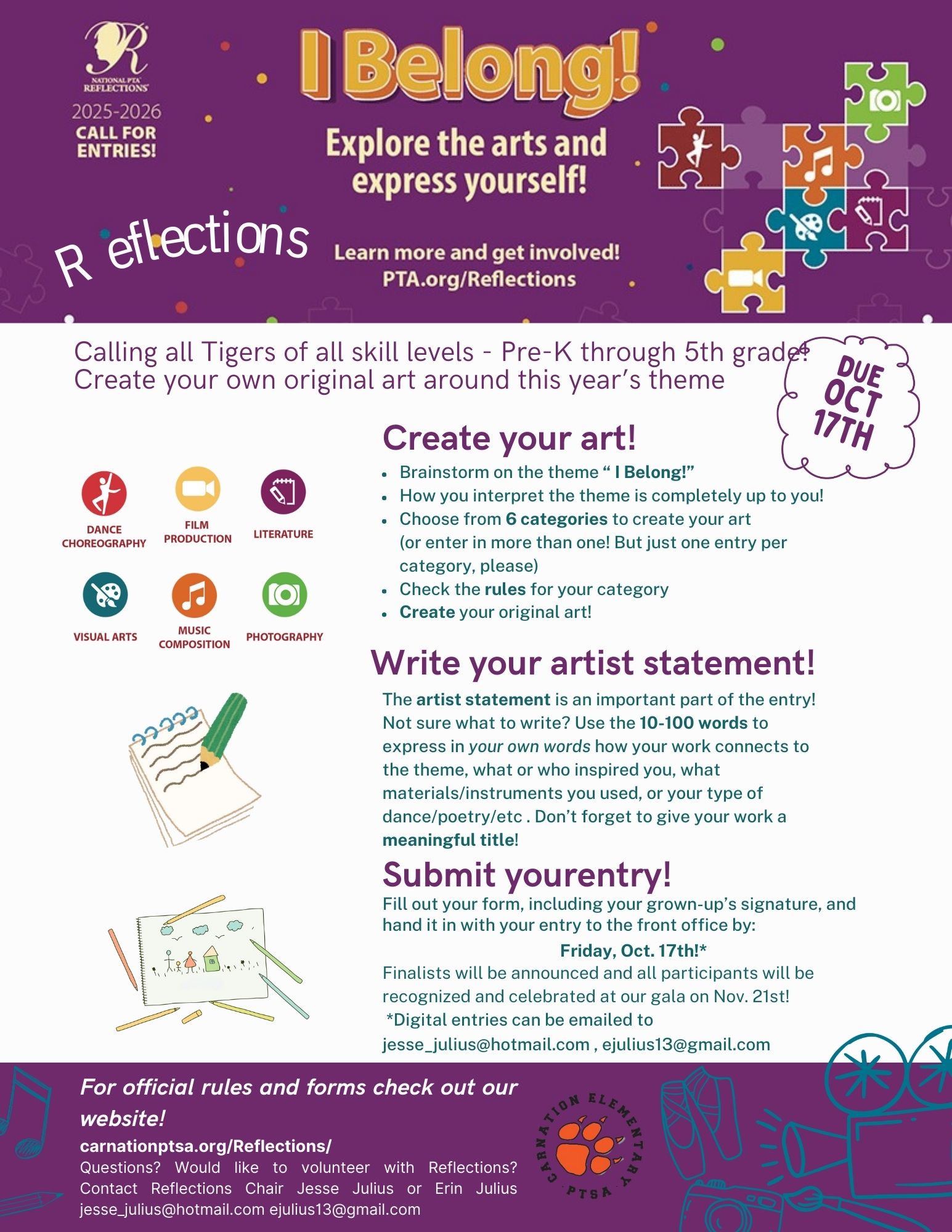 It’s not too late to get your Reflections art finished and turned in this Friday October 17th to show us how you “Belong”!