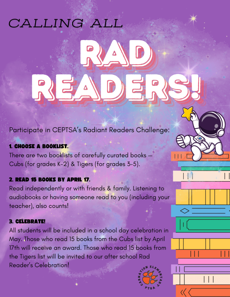Hey Tiger families, it’s a great time to check in with your Rad Readers by looking over their booklist, reading together and