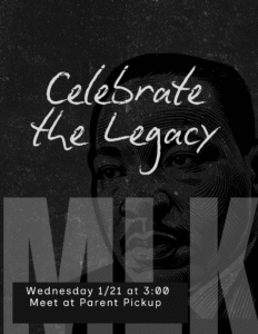 Families are welcome to join the Martin Luther King Jr Peace Walk today, January 21st at 3:00.