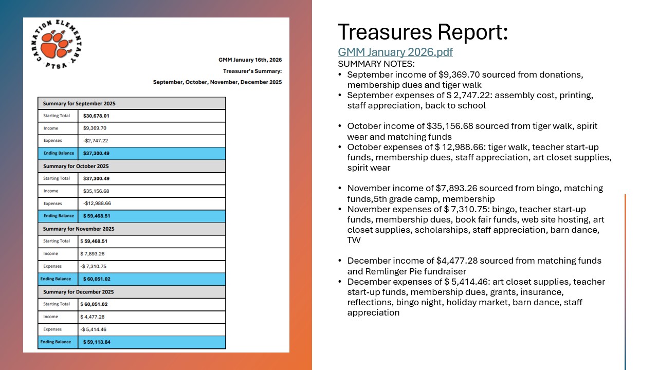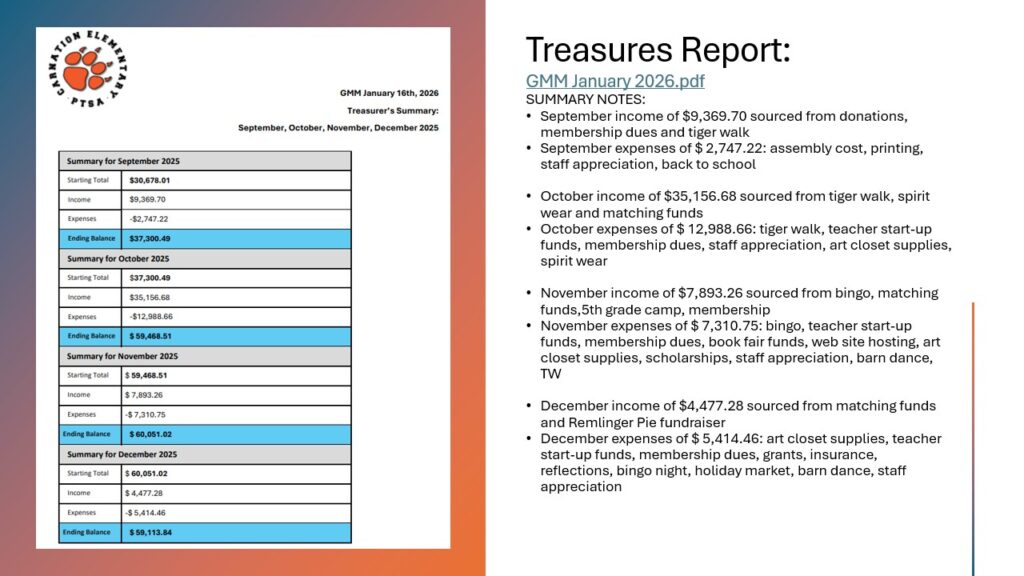 Committee reports showcased the many amazing events and programs that PTSA brings to our school community