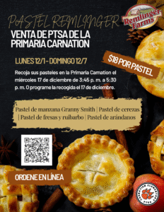 If you ordered pie, come pick them up between 3:45- 5:30 outside the office in the undercover area.
