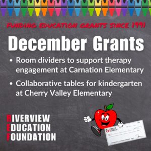 This month, we awarded a grant to Carnation Elementary to help create just that. Their physical and occupational therapy classroom will soon have room dividers that reduce distractions and support more focused therapeutic engagement.