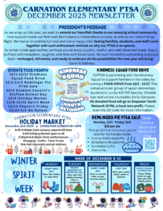 The mission of Carnation Elementary PTSA is to positively impact the lives of all students by partnering with staff, families, and community to foster a culture that values learning, builds community and advocates for all students to excel personally, academically and socially.