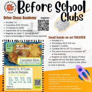 Hey Tiger Families! Get those registrations in for Before School Clubs!